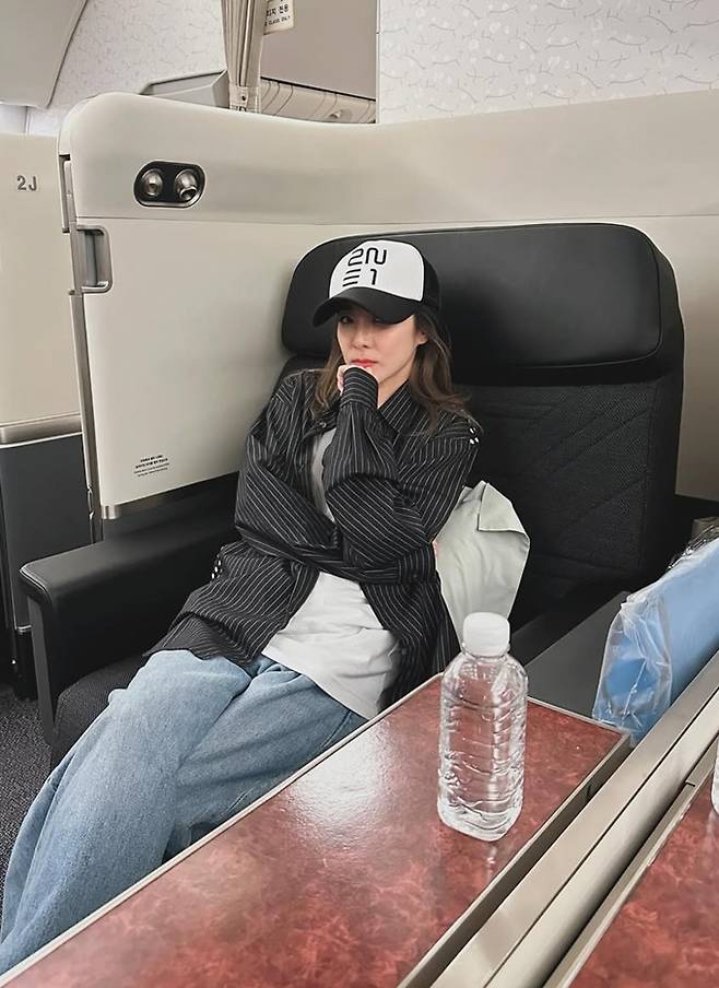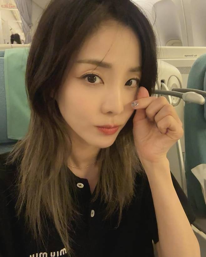 그룹 투애니원(2NE1) 산다라박(39)이 상큼한 기내룩에 귀여운 삽살곰 공항룩으로 시선을 사로잡았다.