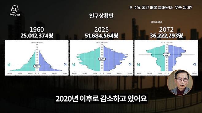 집값과 관련해서 수요 측면을 먼저 살펴보면 집을 수요하는 주체는 결국 사람이며, 인구가 증가하면 주택 수요도 늘어납니다. 하지만 최근에는 총인구 자체가 감소하고 있으며, 특히 경제활동이 가능한 생산연령 인구는 2020년 이후 빠른 속도로 줄어들고 있습니다.
