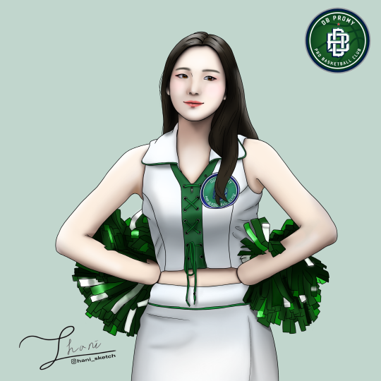 안녕하세요. 원주 DB 프로미 그린 엔젤스의 치어리더 하지원입니다.