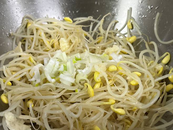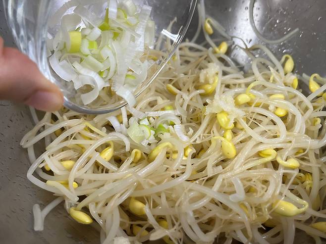 잘게 썬 대파도 넣으면 콩나물 무침이 더 향긋해집니다.