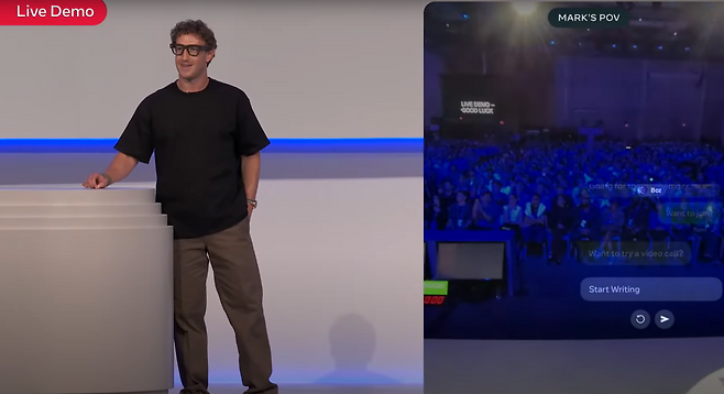 다만 메타는 래이밴 디스플레이 시연을 현장에서 보여주려다 실패했습니다. 저커버그는 '와이파이가 잘 안되어서 이런 일이 발생했다'고 했지만, 아직 안경은 멀었나 하는 생각이 들었습니다.