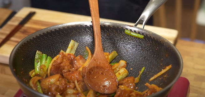 이 과정에서 고기에 양념 국물이 스며들며 자작한 스타일로 완성됩니다.