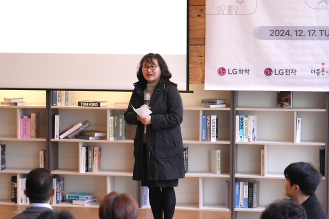 “유럽의 기후섹터 투자 규모는 증가 추세지만, 우리나라에서는 아직 핵심 투자 영역으로 자리 잡지 못한 것 같습니다. 아직 시간이 필요해 보입니다. 하지만 LG소셜펠로우 14기의 노력은 의미가 큽니다. 단순히 돈을 많이 버는 것에서 그치지 않고 세상의 변화에 빠르게 적응하고, 잘 생존해서 세상에 기여하는 기업으로 발돋움하길 바랍니다.” (박수진 운영위원)