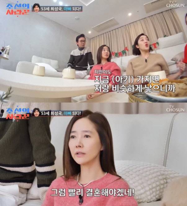 김준호와 공개열애중인 김지민은 얼마전 아기를 낳고 싶다는 고백을 해 화제가 되기도 했는데 최근 방송된 TV조선 '조선의 사랑꾼'에서는 배우 최성국이 53세의 나이에 드디어 아들을 품에 안는 모습이 그려졌습니다.
