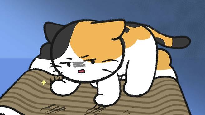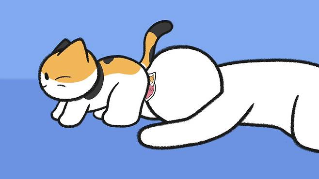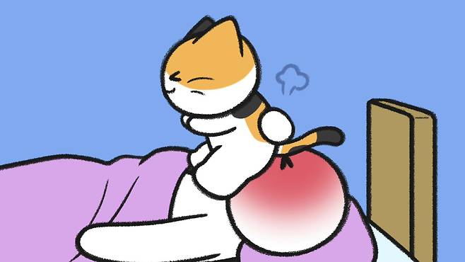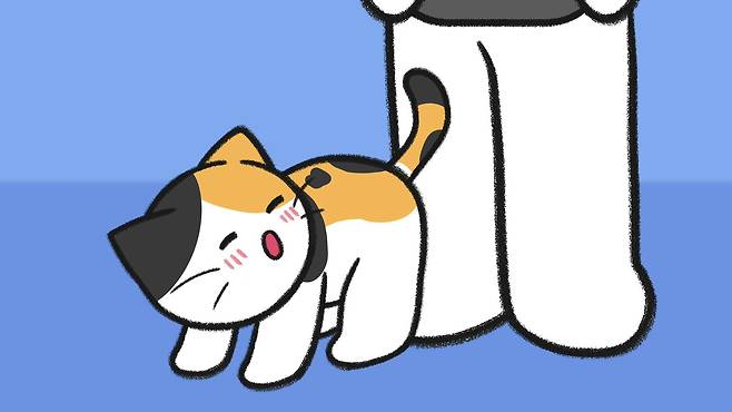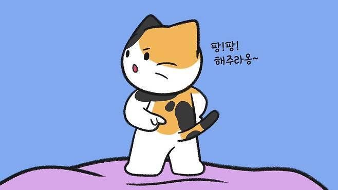 이럴 때 고양이의 꼬리뼈 쪽을 쓰다듬거나