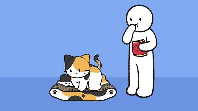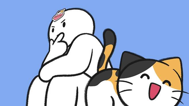 고양이가 지켜주고 싶은 것을 등 뒤에 두고