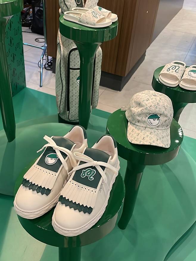 액세서리와 소품 매치도 눈여겨볼 만했는데요. 이주연은 연두색 디테일이 들어간 캡 모자와 빅 골프백, 스니커즈까지 같은 패턴으로 통일해 통일감 있는 골프룩을 완성했습니다.