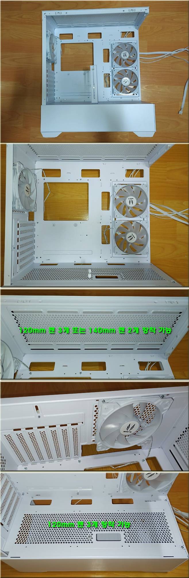 파워챔버홀 위쪽에서 120mm 팬 3개를 추가장착할 수 있습니다.