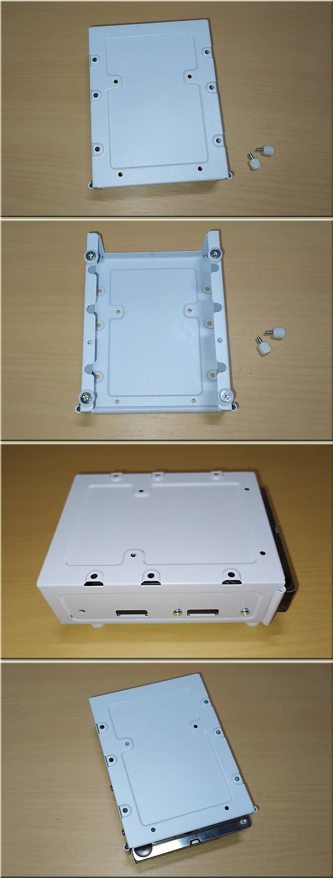 바닥면의 나사 2개를 풀면 HDD베이를 분리할 수 있으며, HDD를 장착해보았습니다.