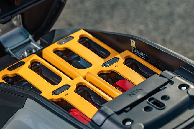 60km 정속 주행 시 180km라는 긴 주행거리의 비결은 사실 시트 아래 수납되는 네 개의 배터리에 있다. 차체, 그중에서도 시트 아래 부분이 꽤 두툼한데 이는 배터리 네 개를 수납하기 위한 구조 때문이다. X10은 가정에서 배터리를 충전해 사용하는 소유형과 스왑시스템 배터리를 사용하는 공유형으로 나뉜다. 배터리 소유형으로 구매하고 공유서비스에 가입하면 총 네 개의 배터리를 탑재할 수 있다. 배터리는 두 개가 세트로 작동되며 주행 중 한세트의 배터리가 소진되면 수납공간에 실려 있는 완충된 배터리로 바로 교체해 사용할 수 있는 것이다. 와코에서 밝힌 수치는 세트 당 90km지만 이는 가장 완벽한 상태에서 저속으로 달려야 가능한 거리다. X10의 성능을 즐기며 시원시원하게 달리면 주행 거리는 세트 당 60km정도로 크게 줄어든다. 전기스쿠터를 경험해본 라이더라면 공감하겠지만 주행거리가 60km라고해도 배터리 잔량이 30%이하로 떨어지면 불안해지기에 실제 주행거리는 40km수준이 된다. 하지만 새 배터리 세트가 뒤에 실려 있다면 이야기가 다르다. 또한 회생제동을 적극적으로 사용하면 주행거리를 늘릴 수 있어 주행 스타일에 따라 주행 가능거리가 거의 두 배까지 차이가 나게 된다.