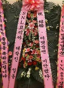 2011년 결혼식 당시 SNL 코리아 제작진이 보낸 화환이 화제가 된 바 있습니다.