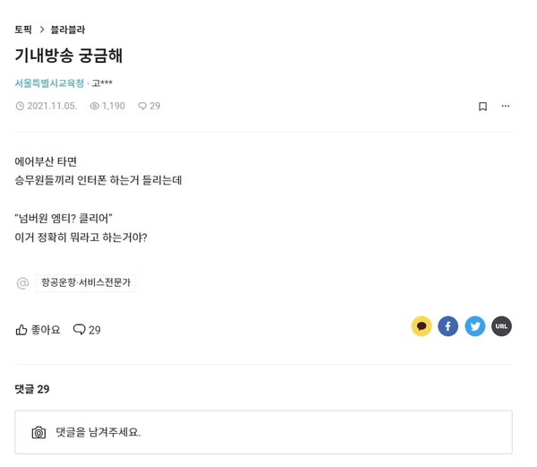 여행을 꿈꾸며 비행기에 오를 때마다 설렘을 느끼곤 하죠. 이륙을 기다리는 동안 승무원들이 인터폰을 통해 교환하는 전문적인 용어들을 들으면서도 그 의미는 쉽게 알기 어려운데요. 이번 글에서는 우리가 비행기에서 가장 자주 듣게 되는 "넘버원 클리어"와 같은 구호들이 어떤 의미를 담고 있는지, 왜 이런 절차를 거치는지 알아보려고 합니다.