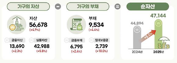 [2025가계금융복지]①가구 순자산 4.7억원…전년비 5.0%↑