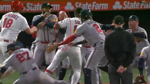 문제의 상황은 5회 말에 일어났다. 애틀랜타 선발 투수 레이날도 로페스가 2사 1루에서 호르헤 솔레어를 상대했다. 초구 시속 97.1마일(약 156.3km)의 패스트볼이 높게 빠지는 폭투가 됐다. 그런데 이후 로페스와 솔레어가 언쟁을 벌이더니 솔레어가 마운드로 돌진했다.