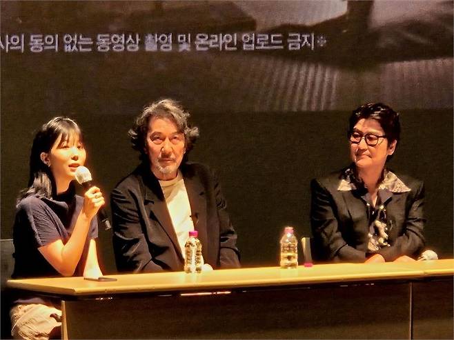 이를 듣고 있던 송강호는 “과찬이다. 제가 야쿠쇼 코지를 처음 본 작품은 <셸 위 댄스>였다. 이후 <큐어>, <우나기>, <멋진 세계>를 좋아한다. 오늘은 <고독한 늑대의 피>가 연상되는 스타일링을 하고 왔다. 작품마다 황홀할 정도의 명연기를 보여줘 선택하기도 힘들다. <퍼펙트 데이즈>는 야쿠쇼 코지 연기의 집대성이란 생각이 들었다”고 말했다.