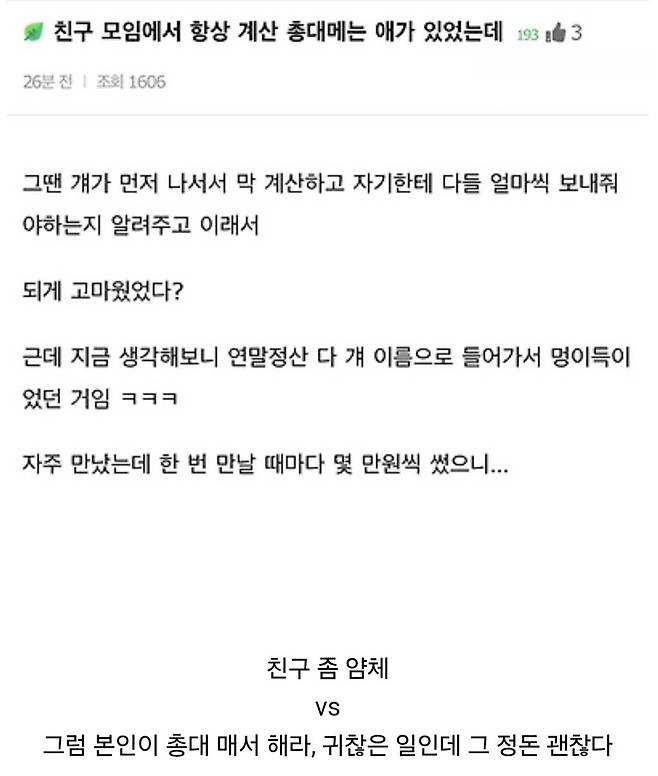 친구 모임에서 항상 계산 총대메는 사람의 진실