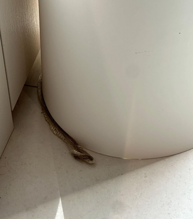 이어 "119와 인터넷에서 찾은 업체에 전화했더니 뱀이 나갔는지 집 어딘가에 숨어 있는지 알 수 없다는 얘기 뿐. 확실히 뱀을 봐야 119에서도 와 주신다고. 그저 뱀 나오길 기다려보고, 나오면 연락 하라는데... 안 나와도 무섭고 나와도 무섭다"고 이야기했다.