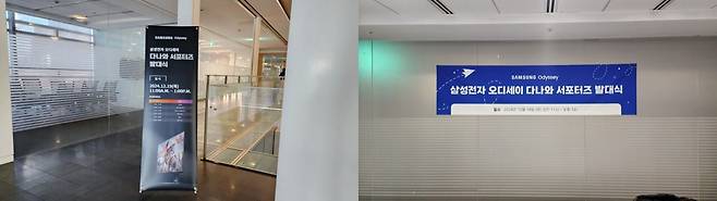 당첨자 발표 후 걱정과 설렘으로 며칠 밤잠을 설쳤습니다. 발대식 날, 삼성전자 서초사옥에 도착하니 이제부터 시작할 오디세이 OLED G8(G80SD)를 어떻게 다루어야 할지 고민이 되었습니다. 삼성전자 서초사옥에서 환영 현수막과 포스터를 보니 저도 삼성전자의 일원으로 활동하게 된다는 생각에 어깨가 무거워졌습니다. 어떻게 하면 최상급 게이밍 모니터 오디세이 OLED G8(G80SD)을 잘 알릴 수 있을지 고민이 드는 사이에 대한민국 최고의 블로거들과 나란히 하게 되니 더욱 긴장이 되더라구요!