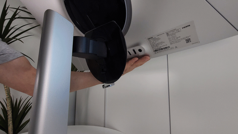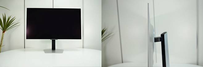 거치대와 모니터 조립 시 유념할 사항은 없습니다. 32인치 크기가 압도적이지만, 슬림한 두께와 가벼운 무게는 가정에서 사용하기에 적합합니다.