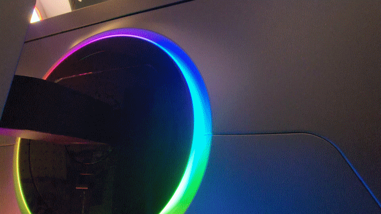 모니터 뒷면에는 코어 라이팅 기능이 탑재되어 있습니다. 코어 라이팅은 모니터 메뉴에서 설정할 수 있으며, 6가지 모드 선택이 가능합니다. CoreSync 기능을 선택하면 모니터 화면을 분석하여 모니터와 후광이 연결된 느낌을 줄 수 있는데, 광량이 조금 부족하여 어두운 환경에서만 잘 느껴질 수 있습니다.