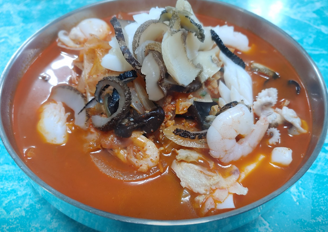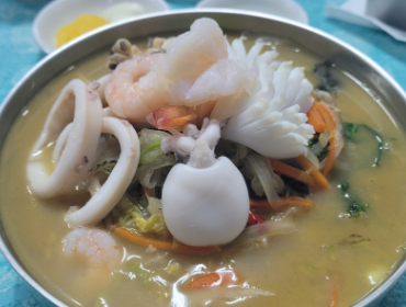 ✔ 강화백짬뽕: 외포리 동백하 육수로 국물맛이 깊고 해산물이 가득!새우, 전복, 굴, 오징어, 미니 가재 등 재료만 봐도 고급 그 자체.