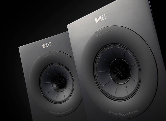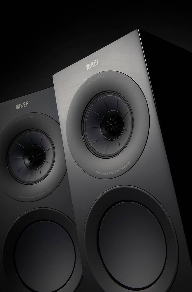 시청기는 거기에 ‘Meta’라는 이름이 붙은 업그레이드 제품. 외관은 대등하지만 상당 부분 소리의 개선이 이뤄졌기 때문에 그 점을 먼저 거론해야겠다. 첫째, MAT(Metamaterial Absorption Technology - 메타물질 흡수 기술) 및 12세대 Uni-Q 드라이버가 채택되었다. 먼저 MAT는 Uni-Q 드라이버 후면에 설치되는 디스크 형태의 부품인데, 매우 복잡한 미로와 같은 구조로 되어 있고, 이 구조를 통해 트위터 후면에서 발생하는 원치 않는 소리의 99%를 흡수하고 왜곡을 제거하는 동사의 신기술이다. 종전의 기술로는 60% 정도의 수치만 흡수하니 수치상 상당한 개선이라 할 수 있다. MAT 설치 효과는 크고, 청각에서 잡다한 맛이나 선명도가 부족한 등의 느낌이 대폭 사라졌다고 하며. KEF는 이에 따라 R 시리즈에도 장착하기로 결정했다. 그리고 Uni-Q 드라이버는 독특해 이제 모르는 사람이 없는데, 이 드라이버의 생김새나 소리는 KEF의 상징이나 다름없는 명품이다. 벌써 12번째나 개선되었다니 놀랍다. R 시리즈에 사용된 12세대 Uni-Q 드라이버는 트위터와 미드레인지 모터를 새롭게 설계했고, 트위터 갭 댐퍼에 디테일과 선명도를 크게 향상시키는 두 개의 다공성 재료의 링을 배치하고 미드레인지 모터 갭에 인덕턴스의 변화를 최소화하는 코퍼 링을 내장하고 섀시까지 변경하는 등 많은 부분이 업그레이드되었다. 레퍼런스 시리즈에 적용된 캐비닛 회절을 줄이는 기술인 셰도우 플레어까지 적용되었다.
