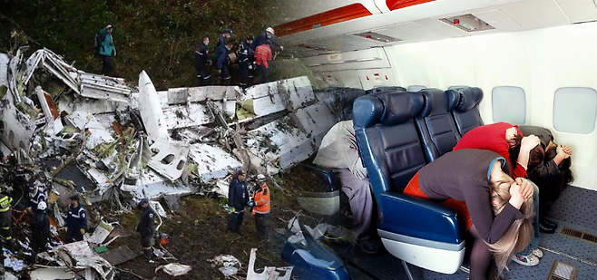 비행기에서는 비상 상황 발생 시 승객들이 외부 충격을 최소화할 수 있도록, 앉은 상태에서 상체를 숙여 무릎을 안거나 앞좌석에 양손을 얹고 팔 사이에 머리를 넣는 웅크린 브레이스 포지션이라는 자세를 취하도록 안내하고 있는데요. 등받이를 세워 이러한 자세를 취하면 어느 정도의 충격은 버틸 수 있기 때문이죠.