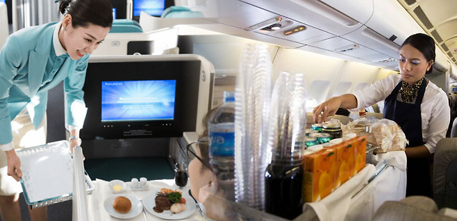 하지만 식사 시간에 되었는데 앞사람이 계속 수면을 하고 있는 경우가 가장 난감합니다. 이럴 경우 승무원에게 도움을 요청하면 앞 사람이 자고 있더라도 깨워서 양해를 구하고 무조건 등받이를 올리게 한다고 하죠.