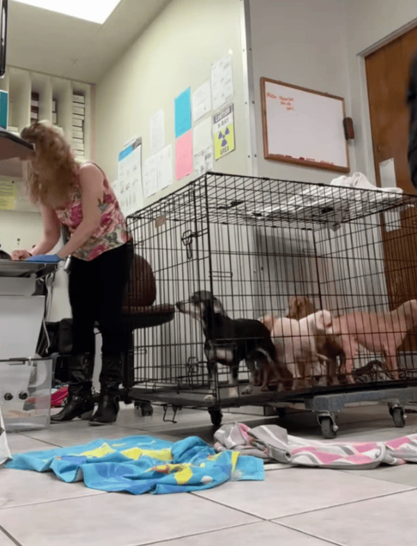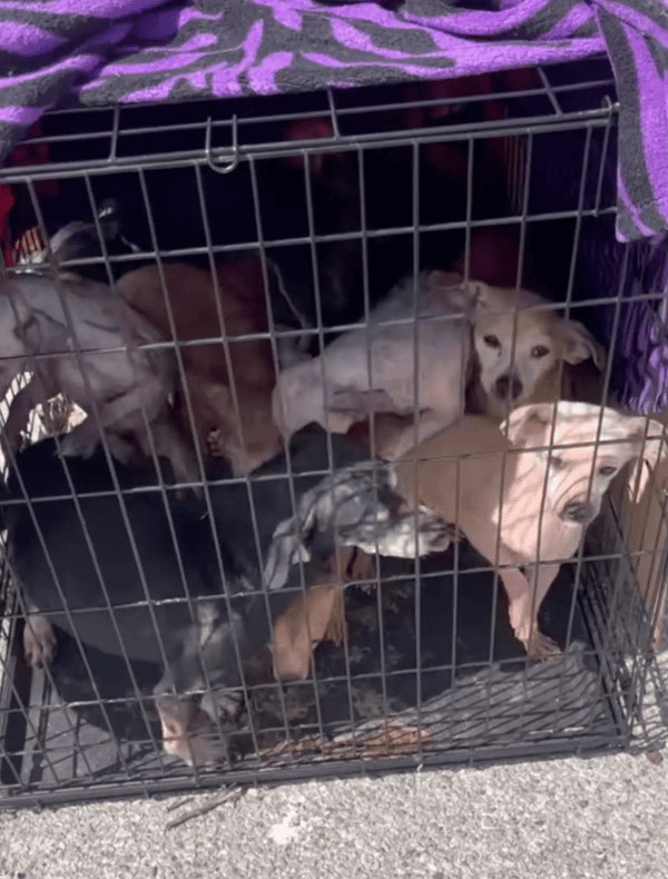친구 벡스 굿맨과 함께 현장으로 달려간 홀은 울타리로 둘러싸인 한 구역에서 보랏빛 얼룩무늬 담요를 발견했습니다. 가까이 다가가 담요를 걷어올린 순간, 그녀는 눈앞의 광경에 말을 잃었습니다. 철장 안에는 무려 10마리의 강아지들이 서로 몸을 맞댄 채 바들바들 떨고 있었던 것입니다.
