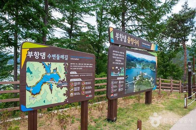 둘레길의 하이라이트는 단연 댐 수면 위를 가로지르는 출렁다리입니다. 수면 위 90m 높이에 설치된 이 다리는 아찔한 높이만큼이나 압도적인 개방감을 선사합니다. 바람과 물이 속삭이는 짜릿한 산책 발걸음을 옮길 때마다 미세하게 느껴지는 다리의 흔들림은 여행자의 심박수를 기분 좋게 끌어올립니다.