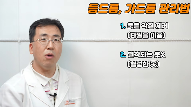 샤워할 때 까칠한 타월로 밀어서 묵은 각질을 수시로 제거해주는 것이 좋음 (+바디브러쉬