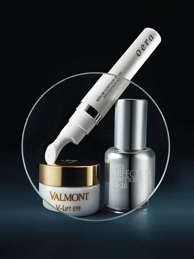 OERA 아이 컨투어 세럼 심해 바이옴 성분이 건조한 눈가 피부에 수분과 영양을 전달해 생기 있는 눈매를 만든다. 세라믹 팁 애플리케이터가 제품 흡수를 높이고 효과를 극대화한다. VALMONT 브이-리프트 아이 고민 부위를 타깃팅해 강력한 유효 성분을 전달하는 아이 크림. 극한의 환경에서 자란 강인한 생명력을 지닌 알프스 빙하 속 미생물이 눈가 탄력을 개선한다. SWISS PERFECTION RS-28 셀룰라 리주베네이션 아이 세럼 브랜드 대표 성분인 셀룰라 액티브 아이리사®의 강력한 재생력과 수분이 눈가 주름을 완화하는 동시에 건조함과 탄력까지 케어한다.