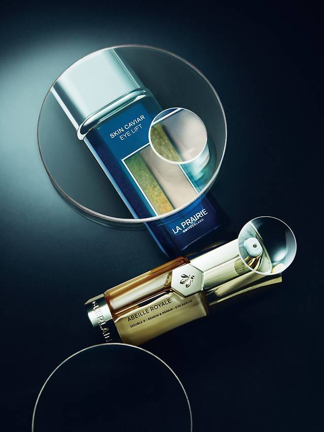 LA PRAIRIE 스킨 캐비아 아이 리프트 캐비아 비즈와 젤 세럼 두 개의 포뮬러를 블렌딩해 눈썹 뼈까지 바르는 세럼으로, 캐비아의 효능을 집약한 제품이다. 탄력에 효과적인 천연 캐비아 추출물과 마린 DNA 등을 담아 다각도로 리프팅 효과를 선사한다. GUERLAIN 더블 R 리뉴 앤 리페어 아이 세럼 눈가 피부는 물론, 눈꺼풀과 속눈썹까지 한 번에 관리해주는 아이 세럼. 영양을 풍부하게 공급해 다크서클 개선, 주름 완화, 속눈썹의 모근 강화를 돕는다.