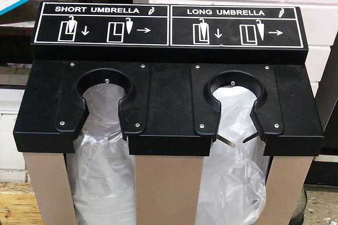 비 오는 날 한국의 실내 공간에서 흔히 볼 수 있는 우산 포장기도 외국인들에게는 생소한 물건입니다. 우산에서 떨어지는 물로 인해 발생할 불편함과 안전사고를 방지하기 위해 만들어진 이 포장기는 한국의 세심한 배려 문화를 보여줍니다.