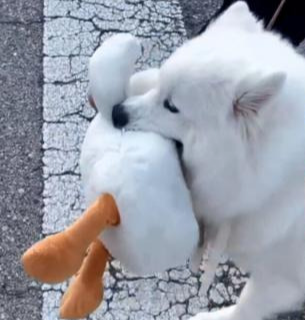 하얀 솜뭉치 같은 사모예드 ‘누누’는 산책할 때마다 예기치 못한 선물을 하나씩 안고 집으로 돌아오곤 해요. 근데 그날은 뭔가 달랐어요. 보호자와 함께 평소처럼 산책을 나섰던 어느 날, 길 한가운데에 홀로 떨어진 오리 인형이 있었죠.