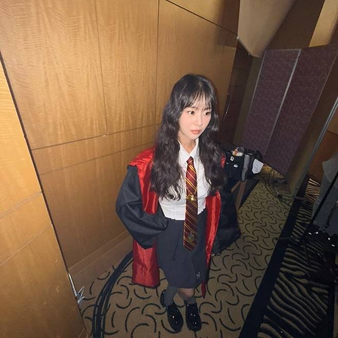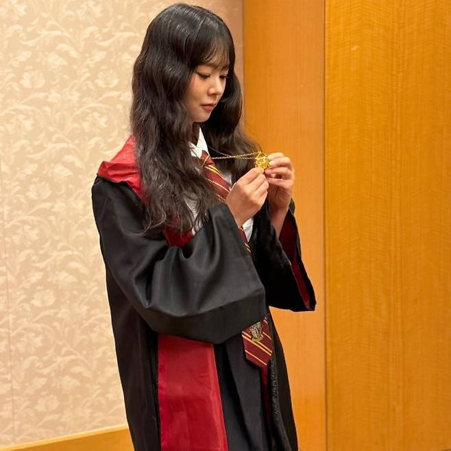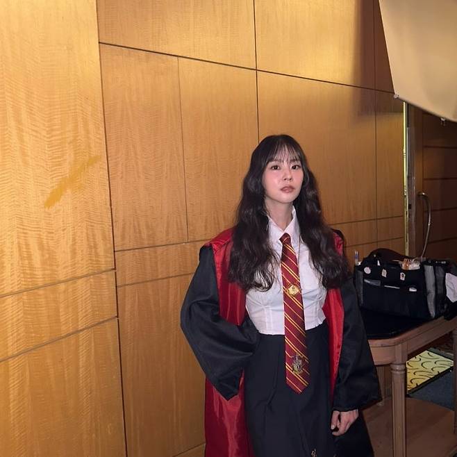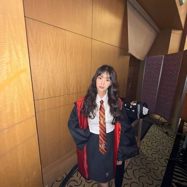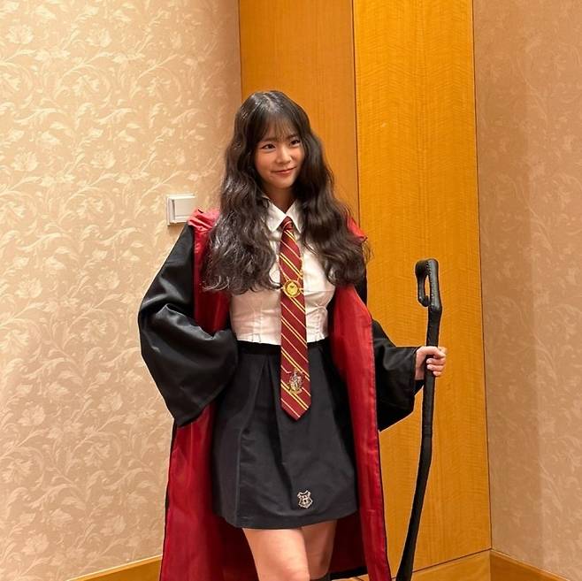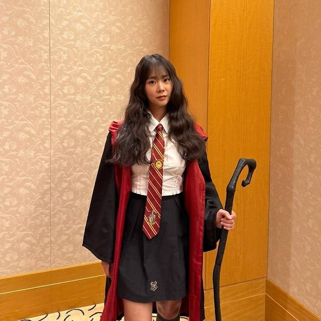 호그와트 마법학교 교복을 입은 사진에서 한승연 씨는 젤리펌 헤어스타일을 선보였다. 젤리펌은 복슬복슬한 느낌의 히피펌과 비슷하지만, 굵은 컬이 더해져 루즈하면서도 자연스러운 매력을 강조한다.