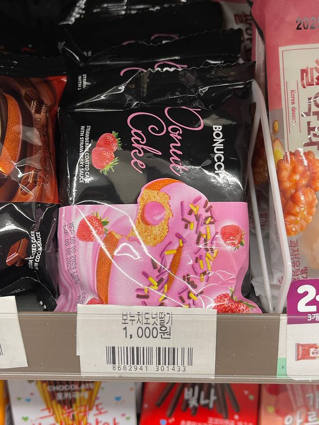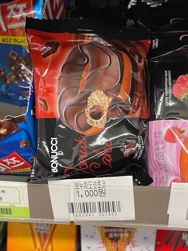 딸기시럽 들어있는 퍽퍽하지 않은 가성비 도넛. 달아요 달아!