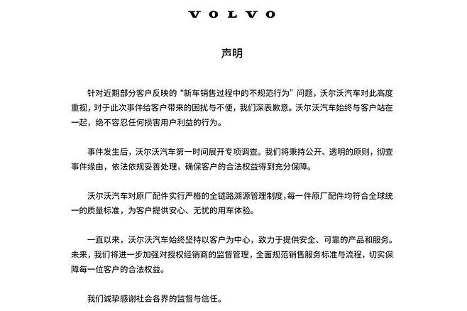 볼보자동차는 이번 짝퉁 스피커 문제에 대해 공식 사과 성명을 발표했다. 성명서에서 볼보는 소비자들에게 큰 불편을 끼쳐 드린 것에 대해 깊이 사과한다는 입장을 밝혔다.
