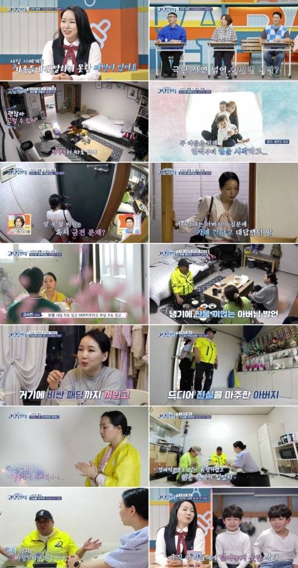 잠시 후 김수빈은 부모님을 비롯해, 두 아들과 함께 살고 있는 다섯 식구의 일상을 공개했다. “지금까지도 남편의 빚을 갚아나가는 중”이라는 김수빈은 이른 아침 카페로 출근해, 새벽이 되어서야 귀가하는 고된 ‘가장’의 삶을 보여줬다. 김수빈의 부모는 손주들을 잘 보살펴주었지만, 딸과는 수시로 부딪혀 냉기류를 형성했다. 특히 육아 스타일, 경제적인 문제 등에서 이견을 보여 언성을 높이기도 했다.