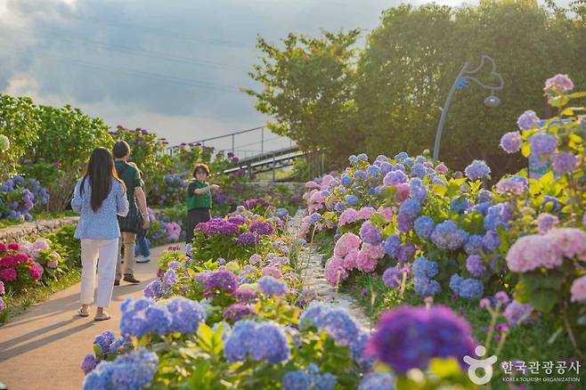 축제 기간 동안 앤드레스 썸머, 쥬디, 베르나 등 다양한 품종의 수국 40종이 약 3만 4천 송이 이상 심어져 장생포 일대를 환하게 밝힙니다. 오색빛 수국이 활짝 핀 산책길을 걷다 보면 마치 유럽 정원에 와 있는 듯한 기분이 들 거예요.