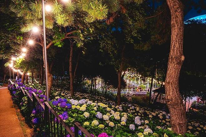 페스티벌엔 개막식과 버스킹 공연, 야경을 더해주는 스트링라이트, 전국 사진공모전까지 다양한 프로그램이 준비돼 있어요. 특히 포토미션 이벤트와 수국체험 프로그램은 누구나 쉽게 참여할 수 있어 가족 단위 관람객에게도 인기예요.