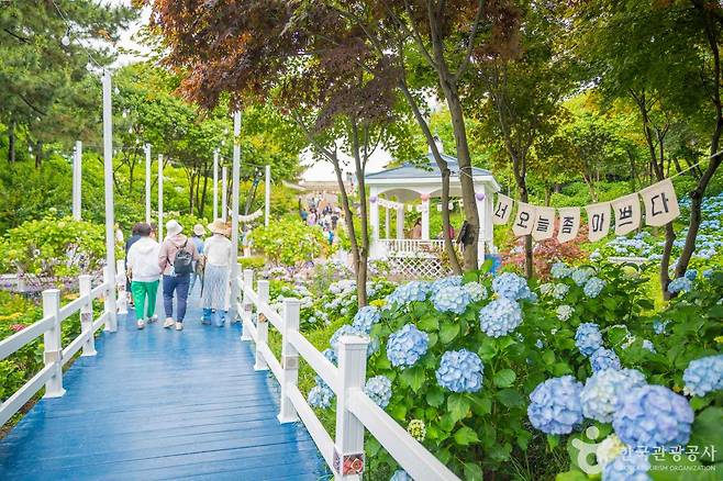 축제 기간 동안 앤드레스 썸머, 쥬디, 베르나 등 다양한 품종의 수국 40종이 약 3만 4천 송이 이상 심어져 장생포 일대를 환하게 밝힙니다. 오색빛 수국이 활짝 핀 산책길을 걷다 보면 마치 유럽 정원에 와 있는 듯한 기분이 들 거예요.