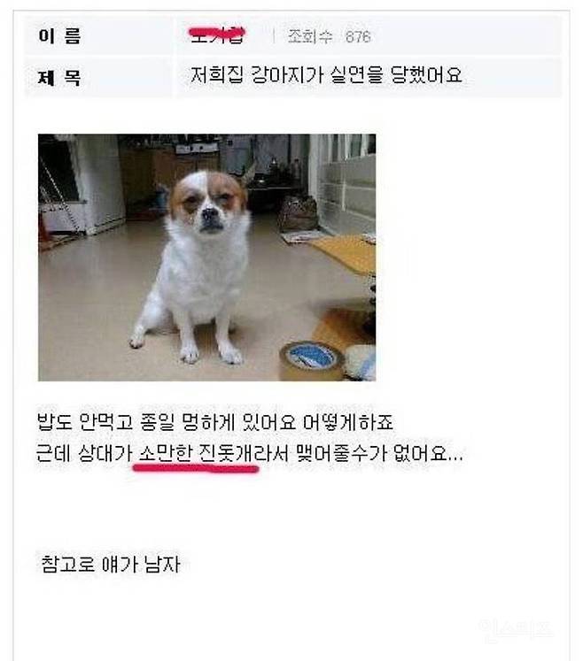저희집 강아지가 실연 당했는데.. 문제가 있어요