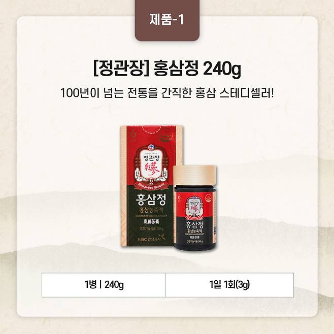 정관장은 120년 전통을 자랑하는 홍삼 브랜드로, 오랜 시간 축적된 신뢰와 높은 인지도를 갖추고 있다.