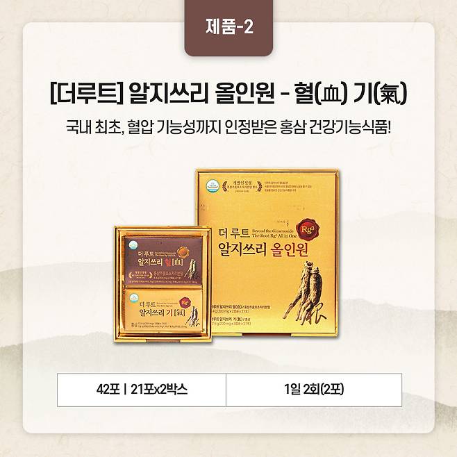 두 번째 비교 제품은 홍삼의 효능을 모두 담은더루트 알지쓰리 올인원.