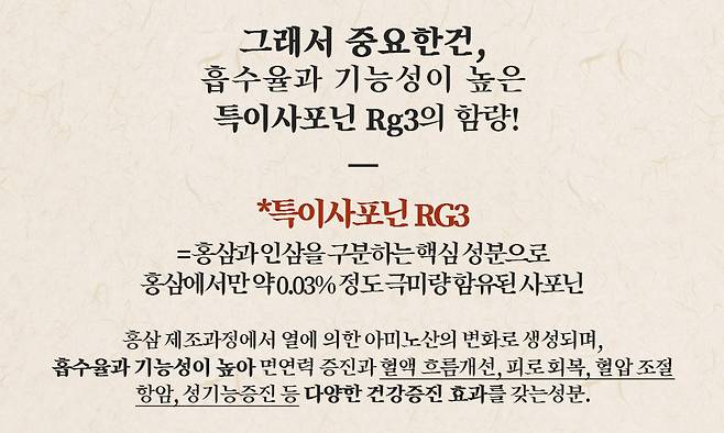 단순 홍삼이 아닌 '실제 기능성'을 중시한다면 이 수치는 중요한 비교 포인트가 된다.
