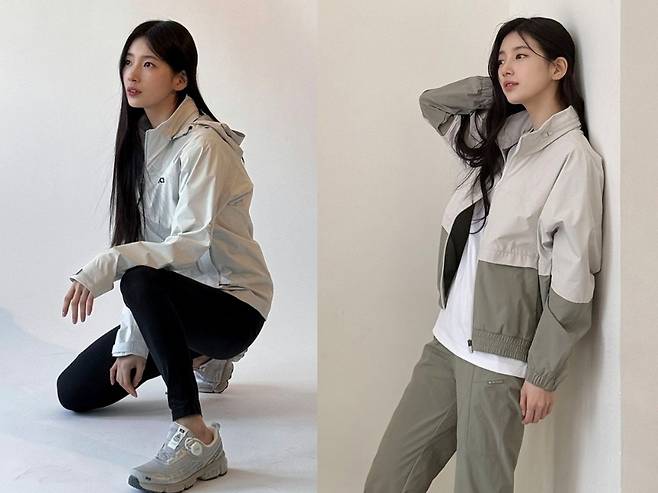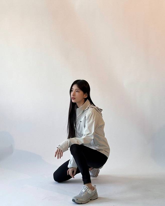 또, 수지는 카키색 바람막이와 팬츠를 착용해 차분하고 분위기 있는 모습을 뽐냈습니다.