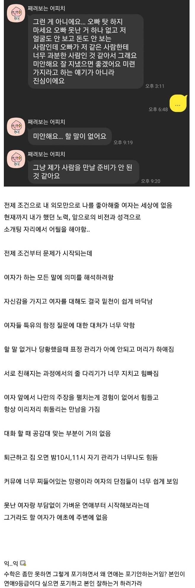 여자에게 카톡으로 거절 당한 남자의 한탄