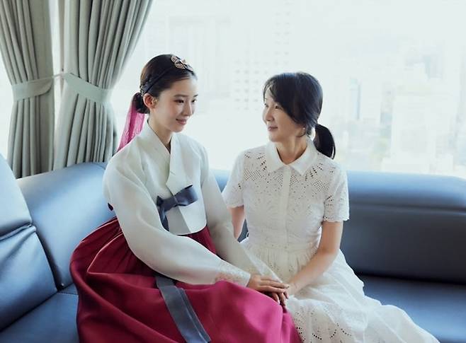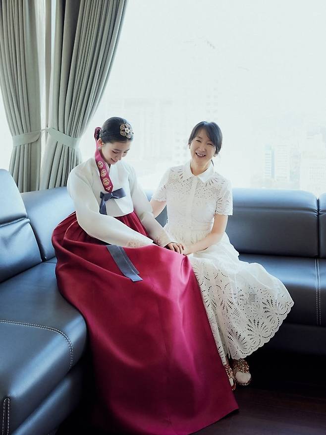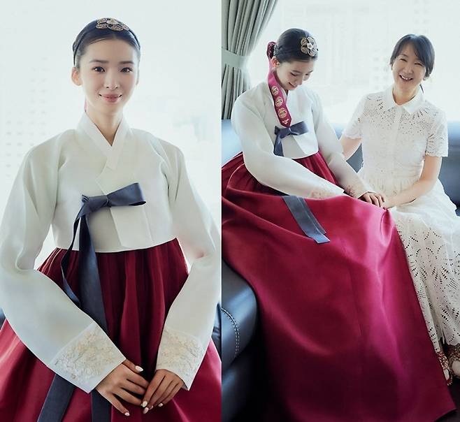 5월 결혼을 앞두고 있는 모델 아이린이 엄마와 훈훈한 투샷으로 곱고 단아한 한복 자태를 뽐냈다.