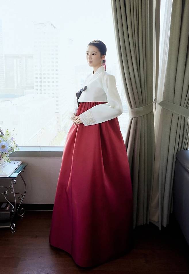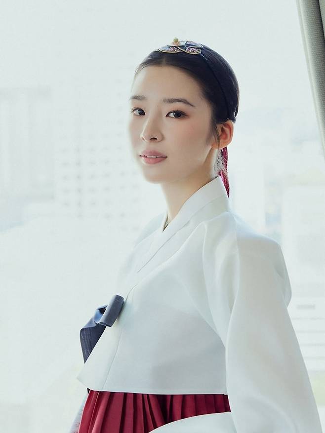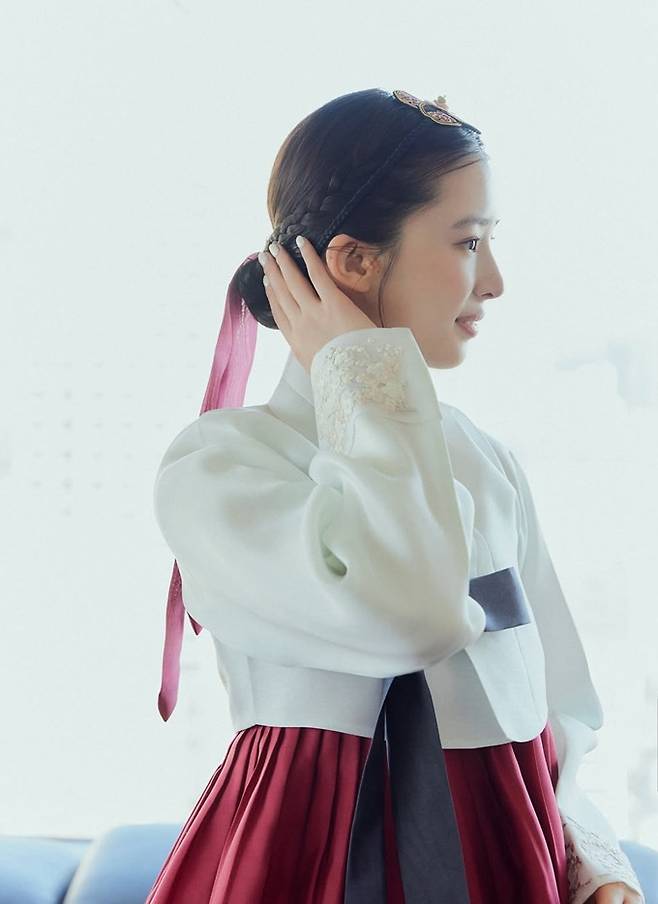 공개한 사진에서 아이린은 붉은 댕기머리에 짝을 이룬 빨간색 치마와 화이트 저고리의 단아한 한복으로 곱고 아름다운 자태를 드러냈다.